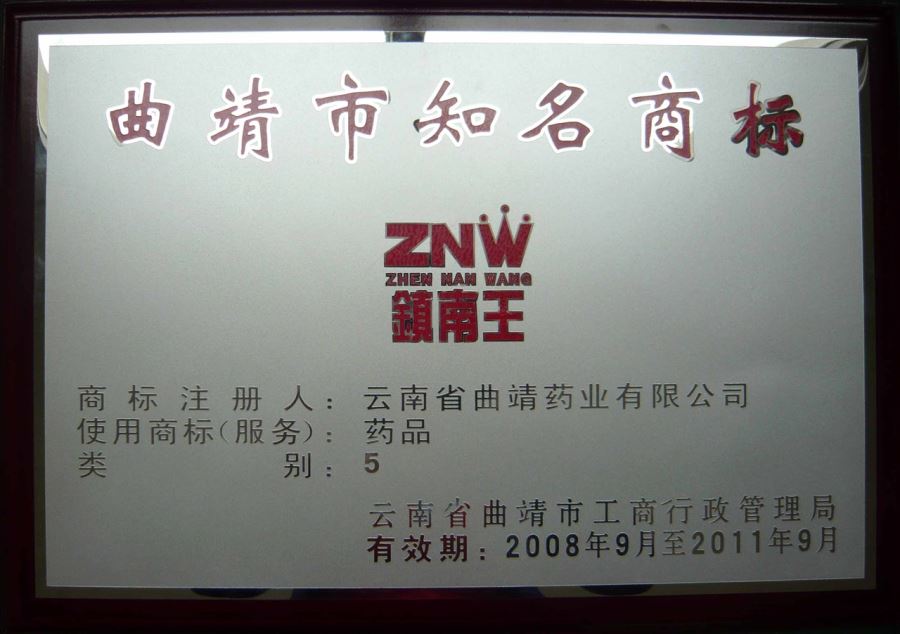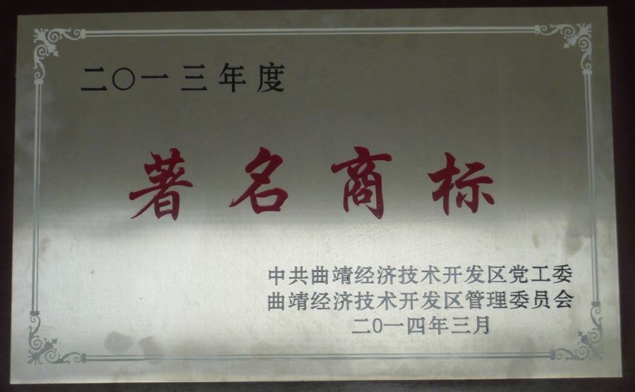 曲靖市知名商標(biāo)獎(jiǎng)牌
