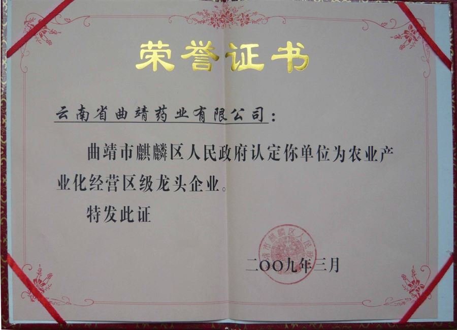龍頭企業(yè)證書(shū)