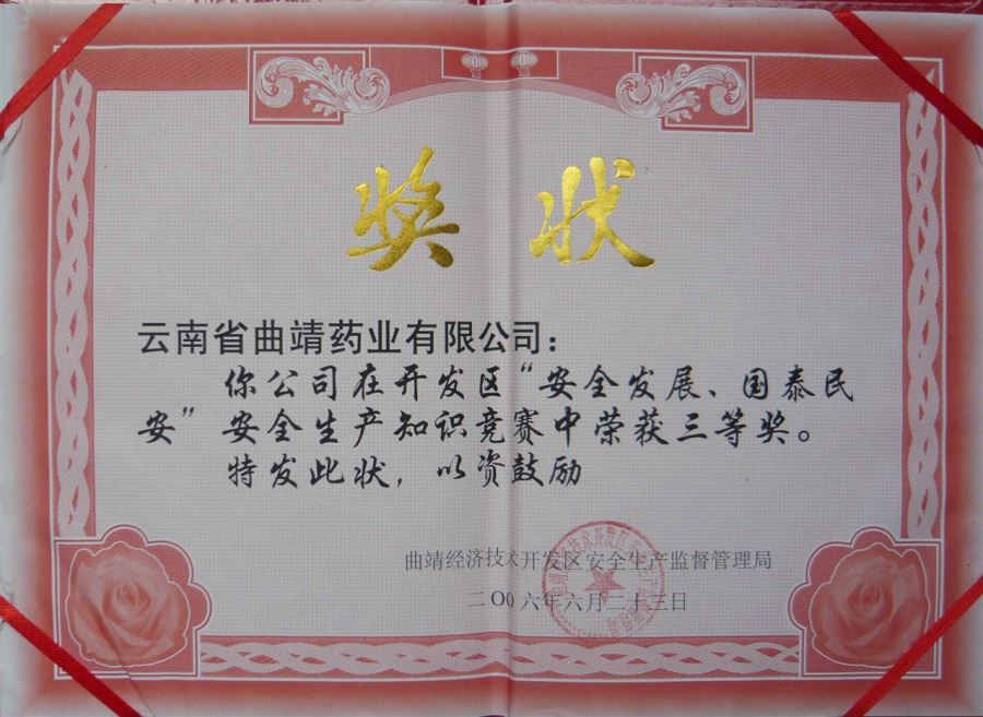 安全發(fā)展、國(guó)泰民安”知識(shí)競(jìng)賽三等獎(jiǎng)
