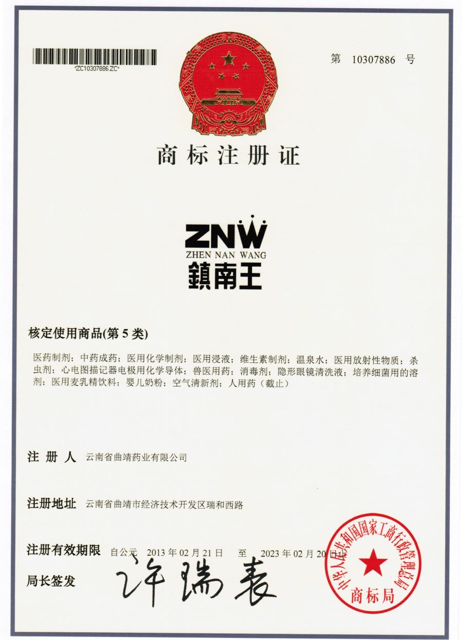 鎮(zhèn)南王第5類注冊(cè)商標(biāo)