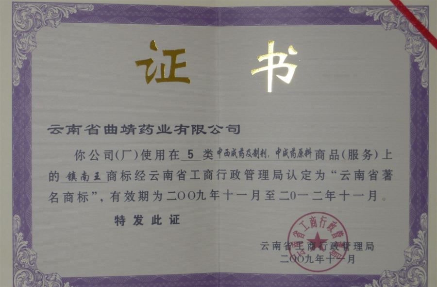 2009年云南省著名商標(biāo)